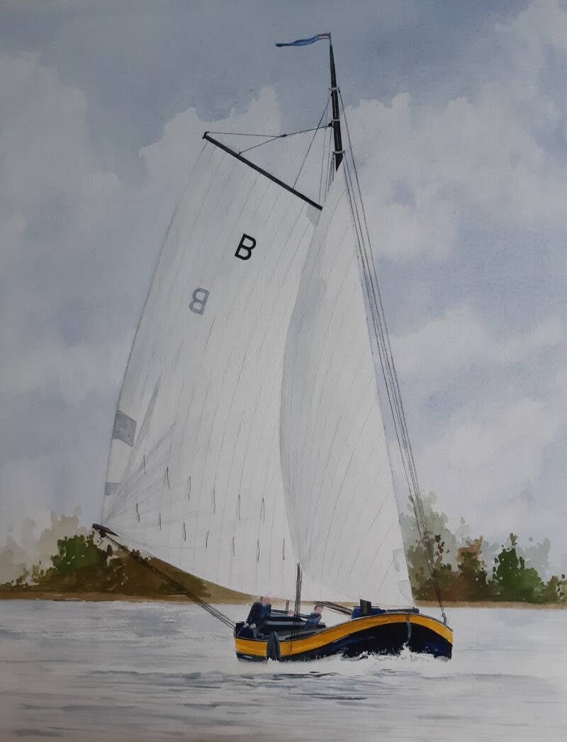 Aquarel 30 x 40 cm, de zandaak Jacob op de Kagerplas.