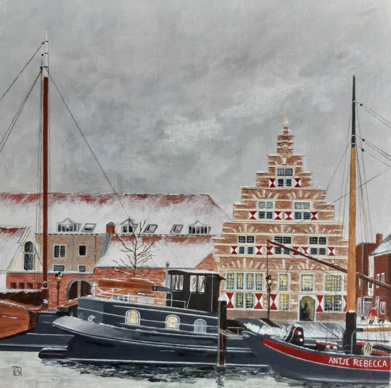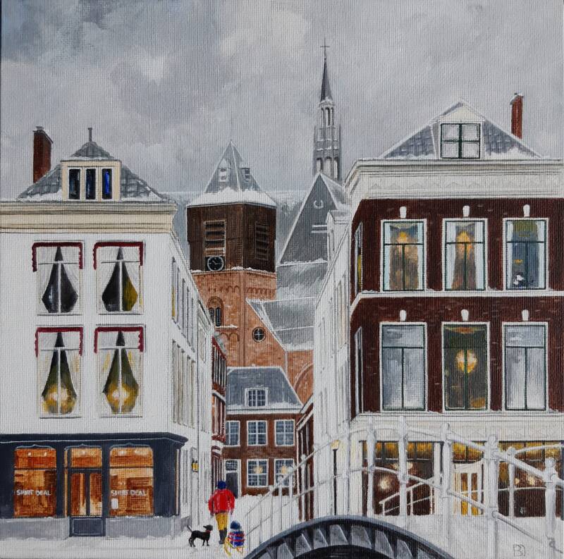 Acryl 25 X 25 cm. Sneeuw, Leiden. (niet beschikbaar / not available.)