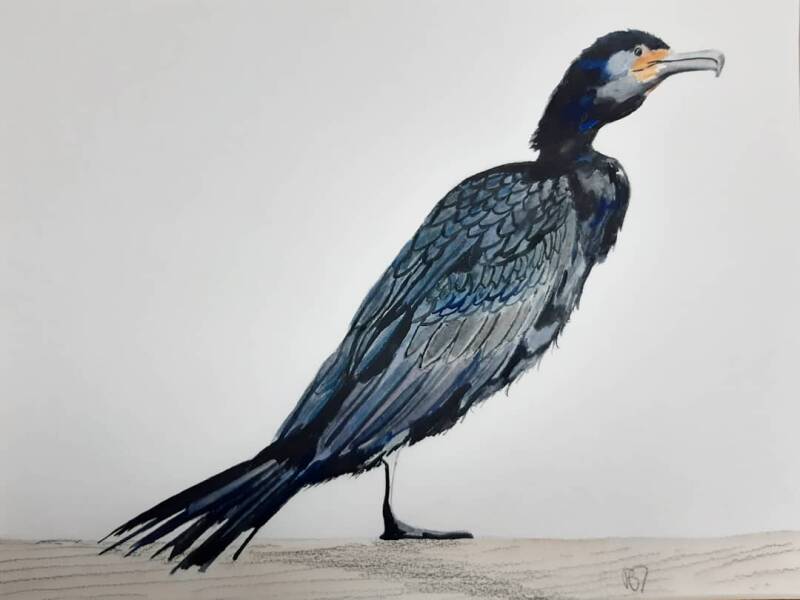 Aquarel 30 x 40 cm. De aalscholver.