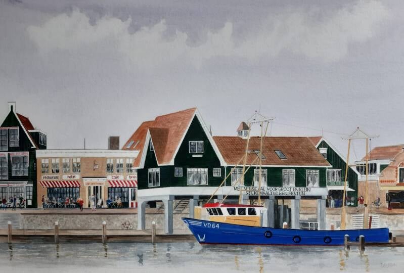 Aquarel 50 x 70 cm. De Dijk in Volendam.