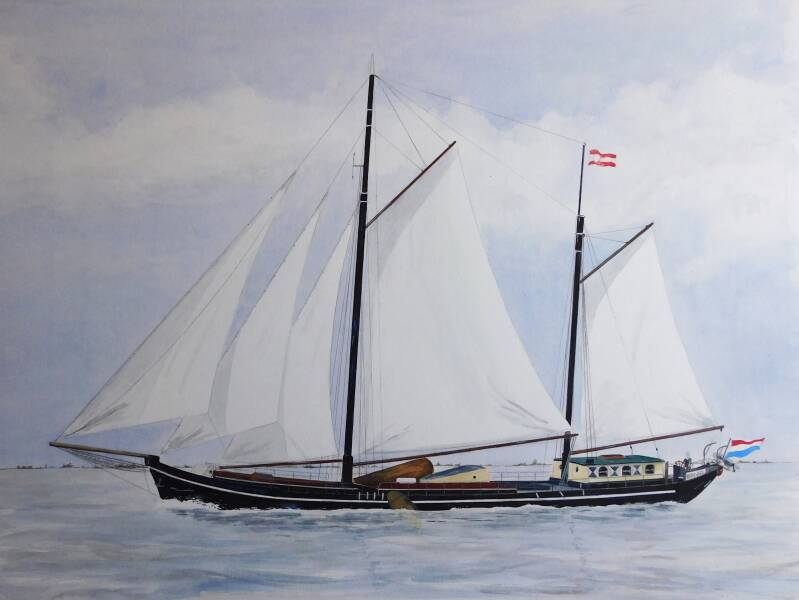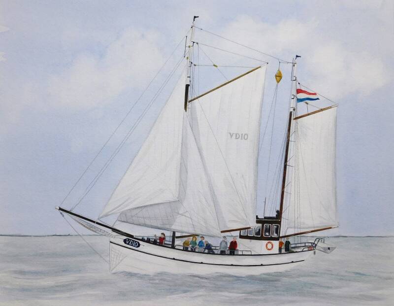 Aquarel 40 x 50 cm. Onder zeil.