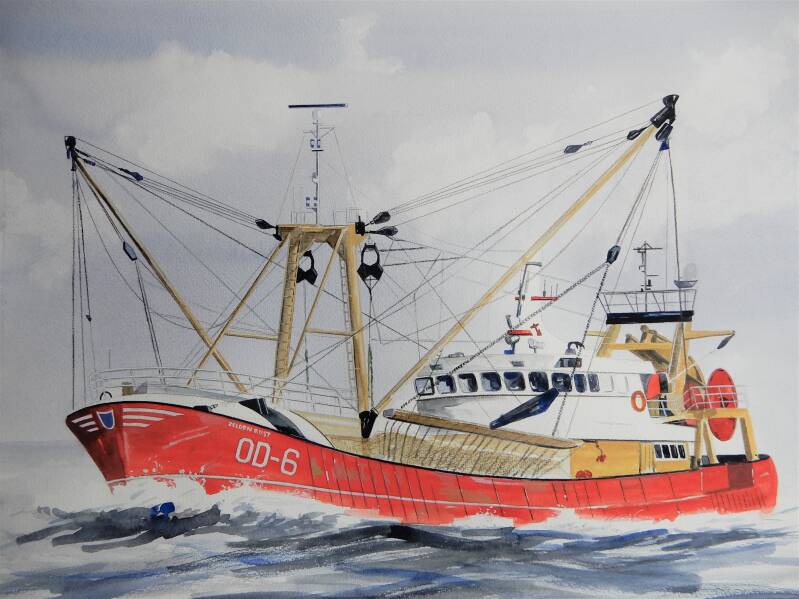 Aquarel 40 x 50 cm. De Trawler.