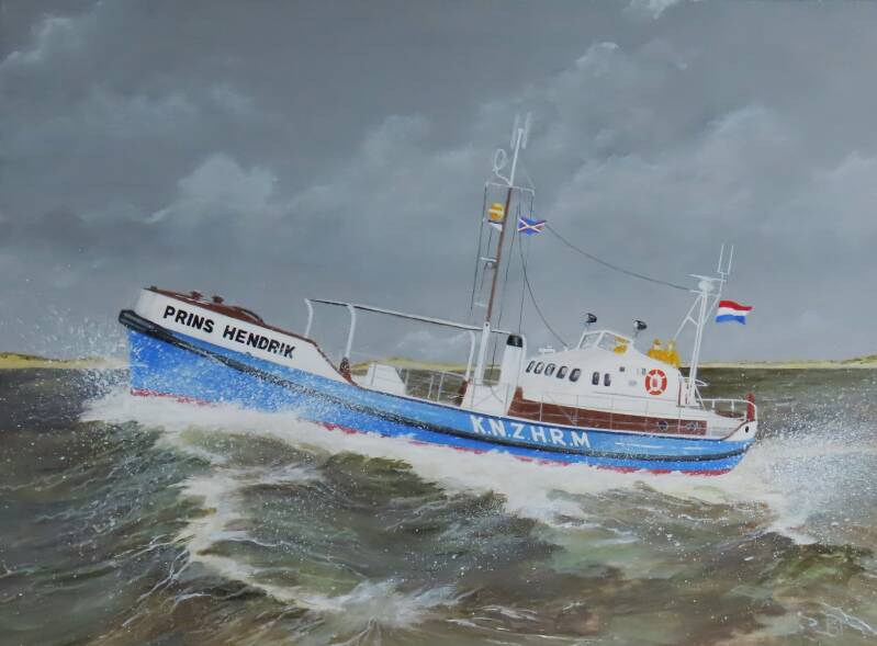 Acryl 30 x 40 cm. Ooit de ruggengraat van de KNRM vloot, nu een van de perfect onderhouden oldtimers van het nationaal reddingmuseum "Dorus Rijkers" in Den Helder.