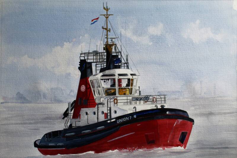De BOKA Falcon van BOSKALIS in aquarel, 50 x 70 cm