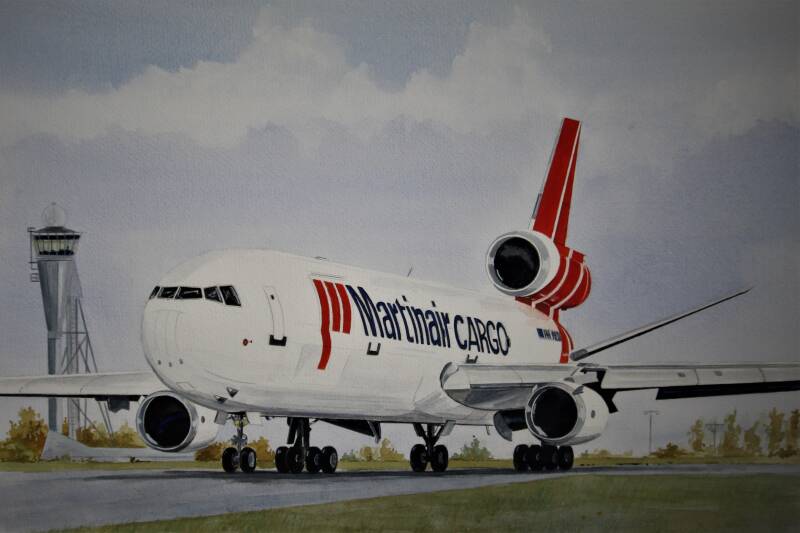 Aquarel 50 x 70 cm, de Dutch made Fokker F50