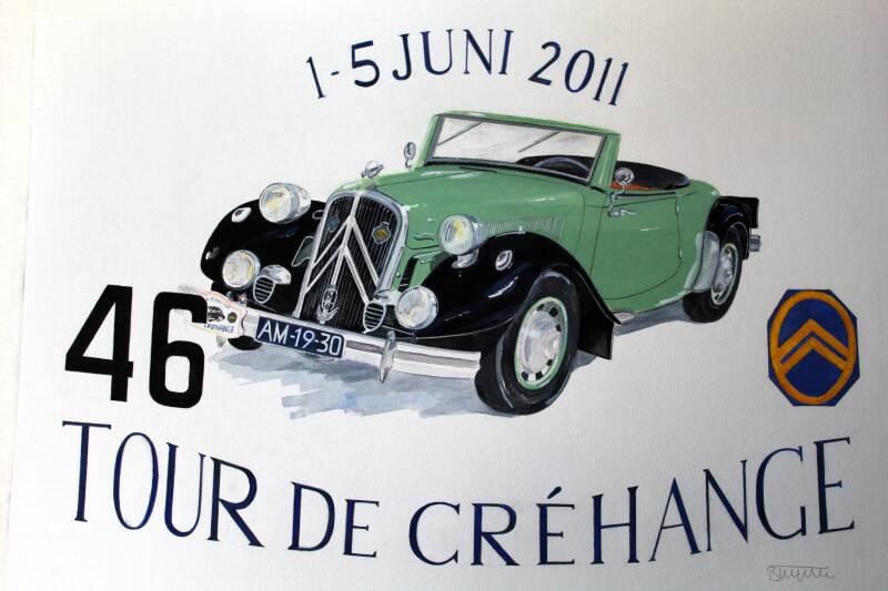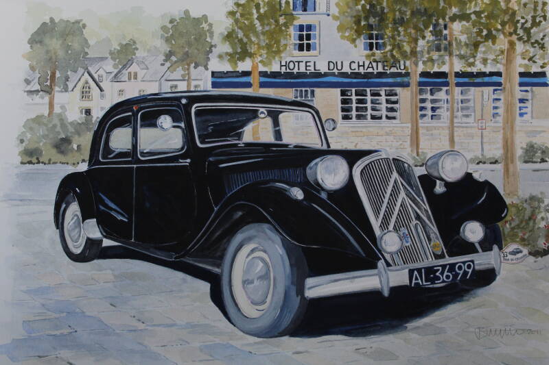 Aquarel 30 x 40 cm. De Citroën Traction Avant cabrio.