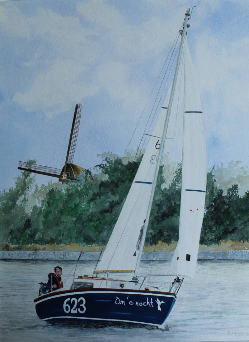 Aquarel 30 x 40 cm Zoon vaart langs (niet beschikbaar).