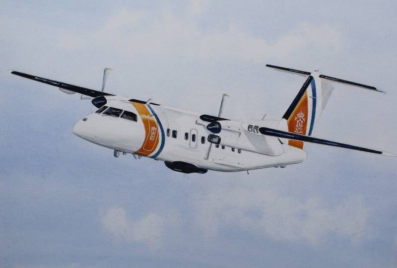 Aquarel 30 x 40 cm, de nieuwe DASH 8 van de kustwacht.
