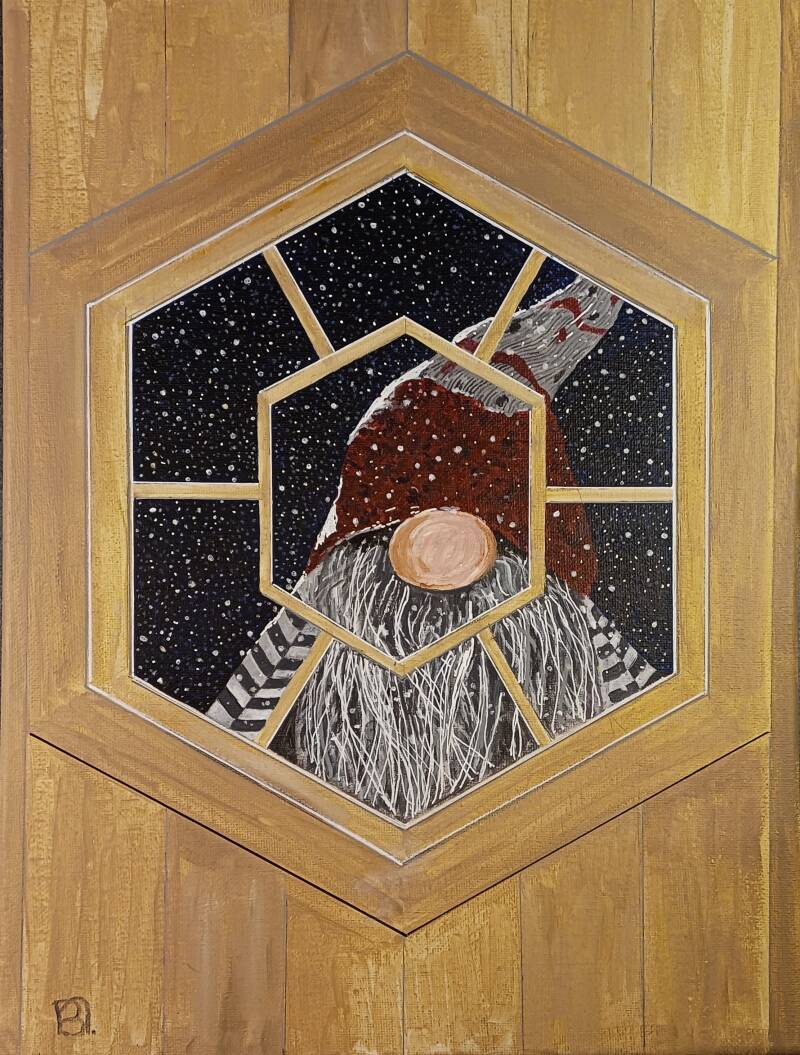 Deze kleine man brengt overal waar hij komt geluk (ook digitaal!). Acryl 30 x 40 cm