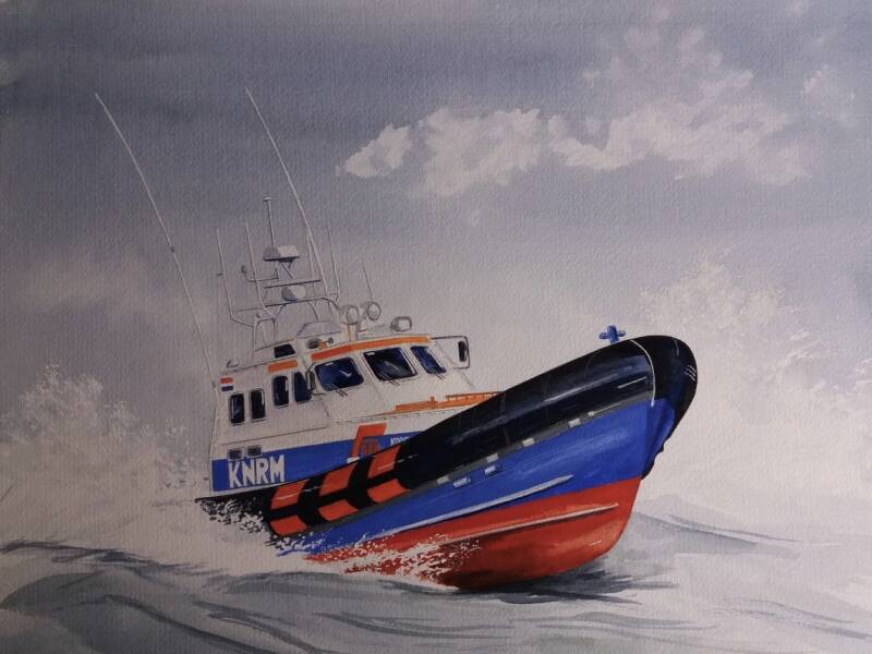 Aquarel 30 x 40 cm. De Koos van Messel van de KNRM, geveild ten bate van de KNRM