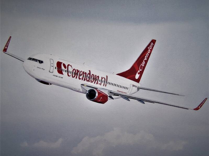 aquarel 30 x 40 cm, de Boeing 737 (Niet beschikbaar / not available)