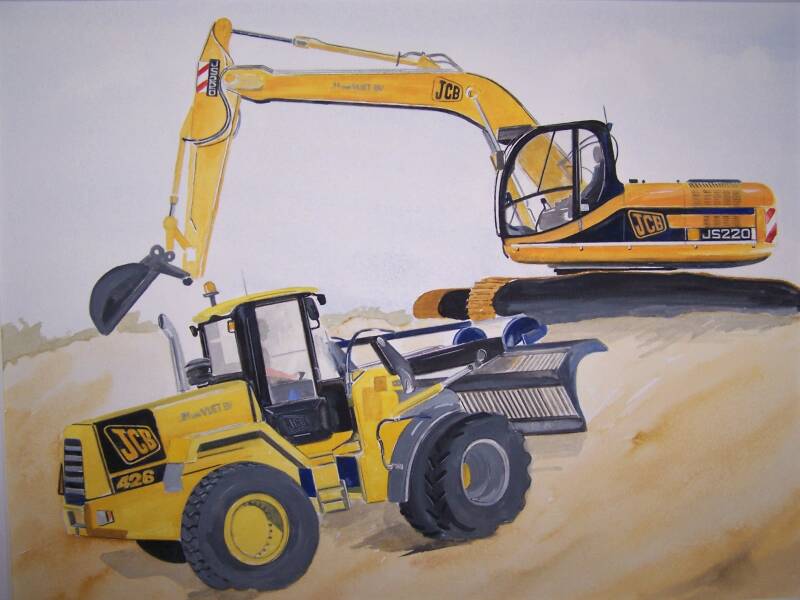 Aquarel 40 x 50 cm, even rustmoment voor de JCB's.